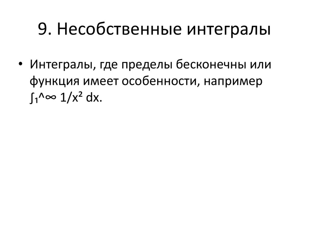 9. Несобственные интегралы• Интегралы, где пределы бесконечны или