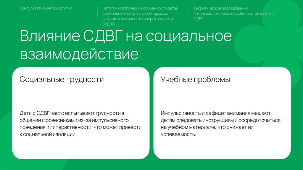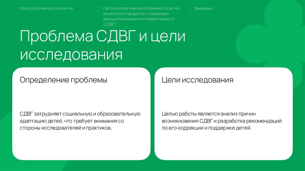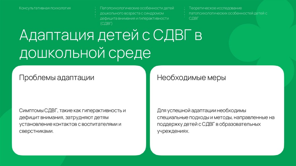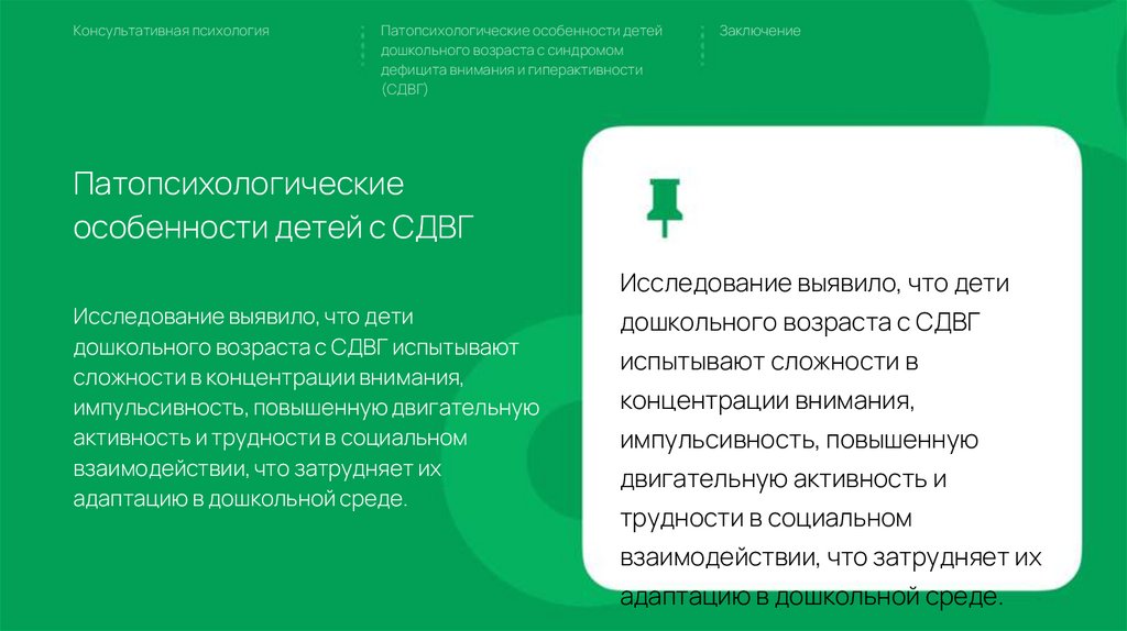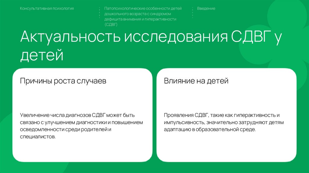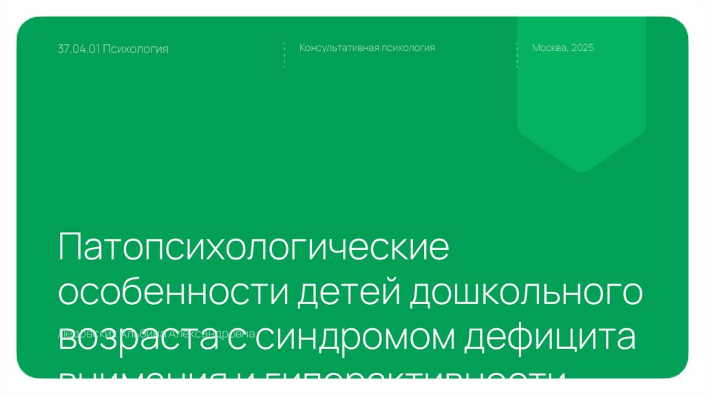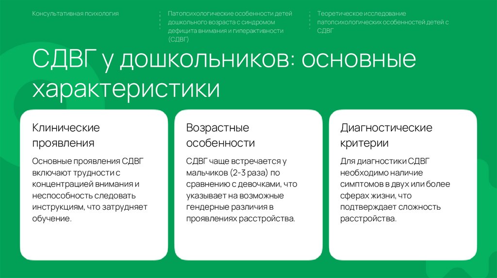 Патопсихологические особенности детей дошкольного возраста с синдромом дефицита внимания и гиперактивности (СДВГ)