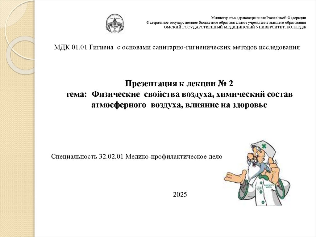 Презентация к лекции №2 Физические свойства и химический состав атмосферного воздуха, влияние на здоровье. (1)