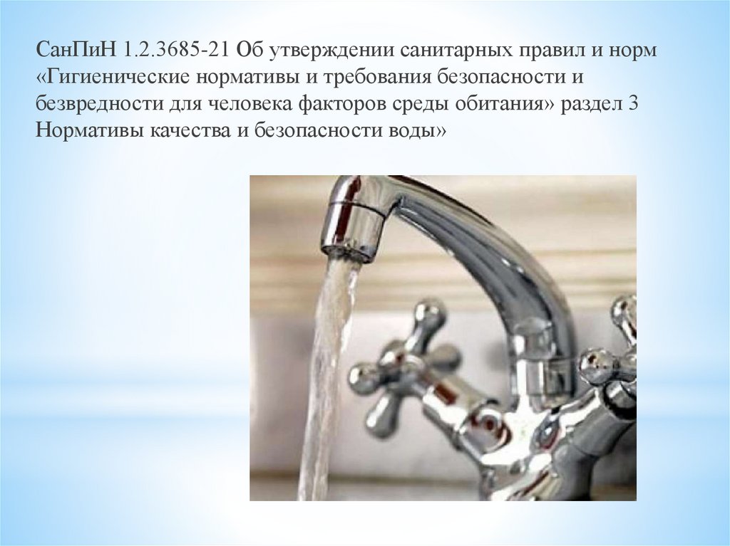 Презентация к лекции № 3 Гигиенические требования к качеству воды хозяйственно-питьевого назначения