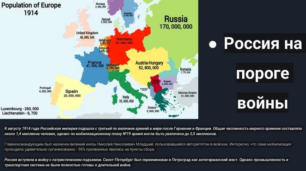 Главнокомандующим был назначен великий князь Николай Николаевич Младший, пользовавшийся авторитетом в войсках. Интересно, что сама мобилизация