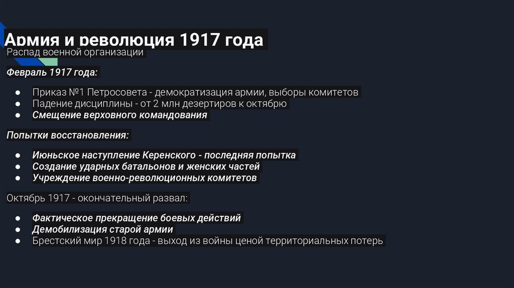 Октябрь 1917 - окончательный развал: