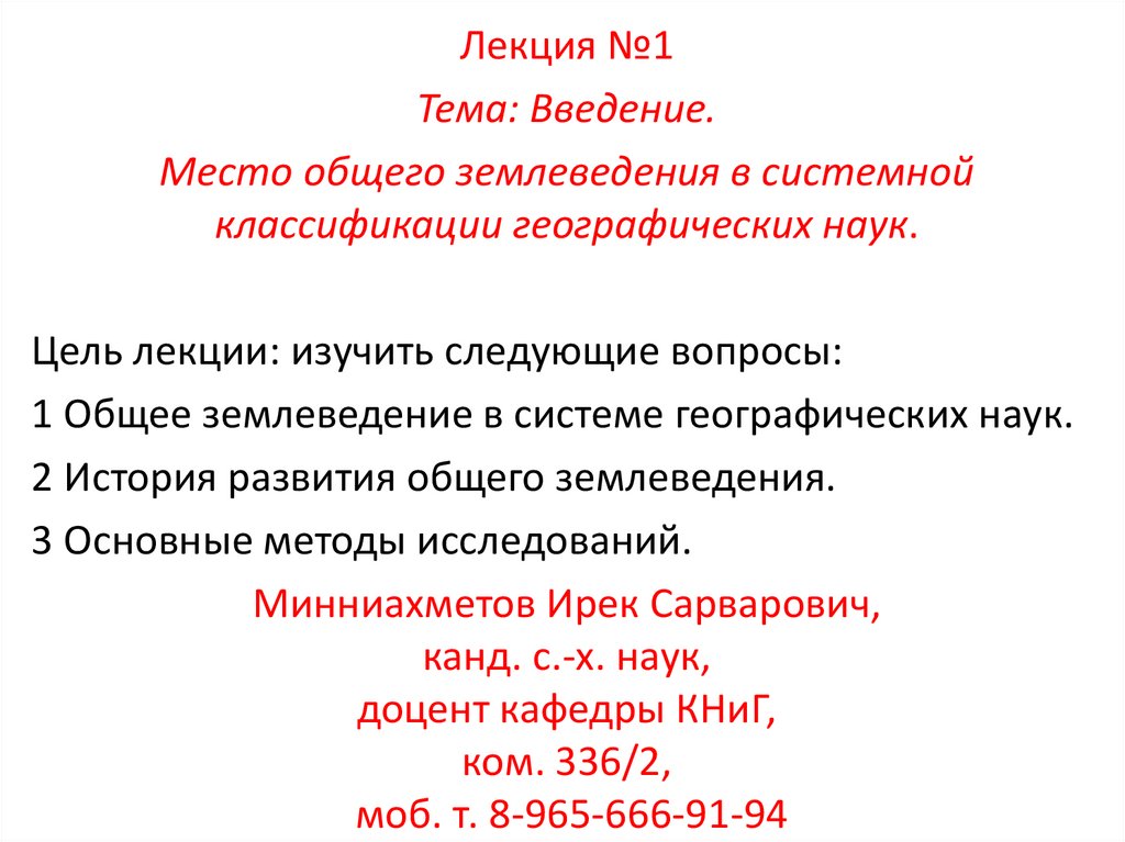 Лекция №1 МЕСТО ОБЩЕГО ЗЕМЛЕВЕДЕНИЯ В СИСТЕМНОЙ КЛАССИФИКАЦИИ ГЕОГРАФИЧЕСКИХ НАУК