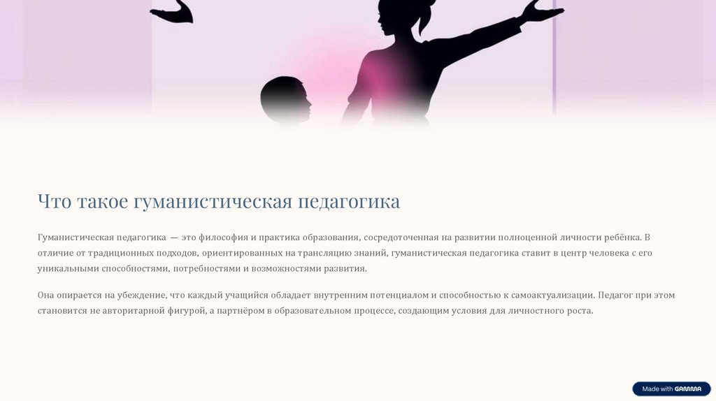 отличие от традиционных подходов, ориентированных на трансляцию знаний, гуманистическая педагогика ставит в центр человека с его