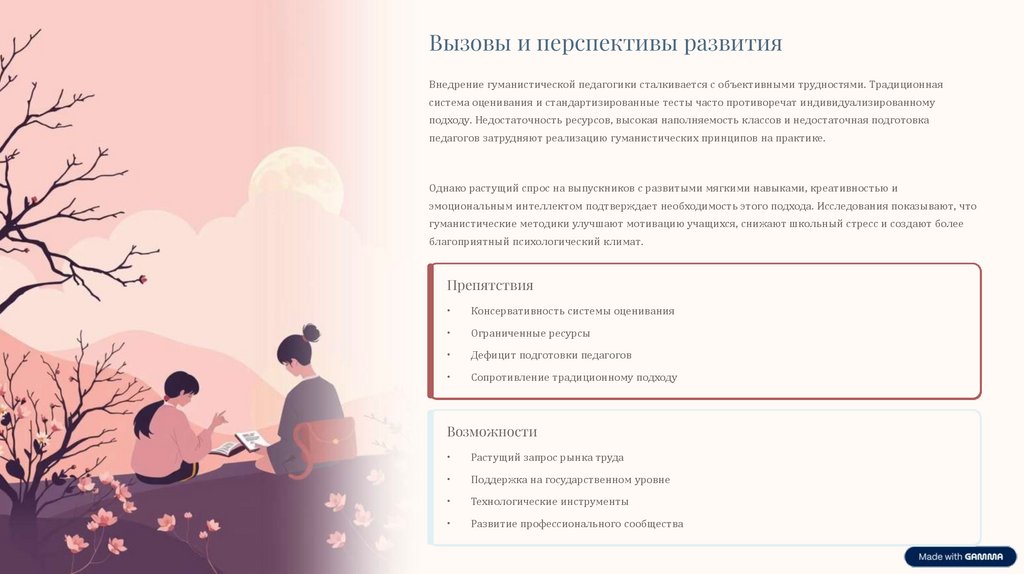 Вызовы и перспективы развитияВнедрение гуманистической педагогики сталкивается с объективными трудностями. Традиционная