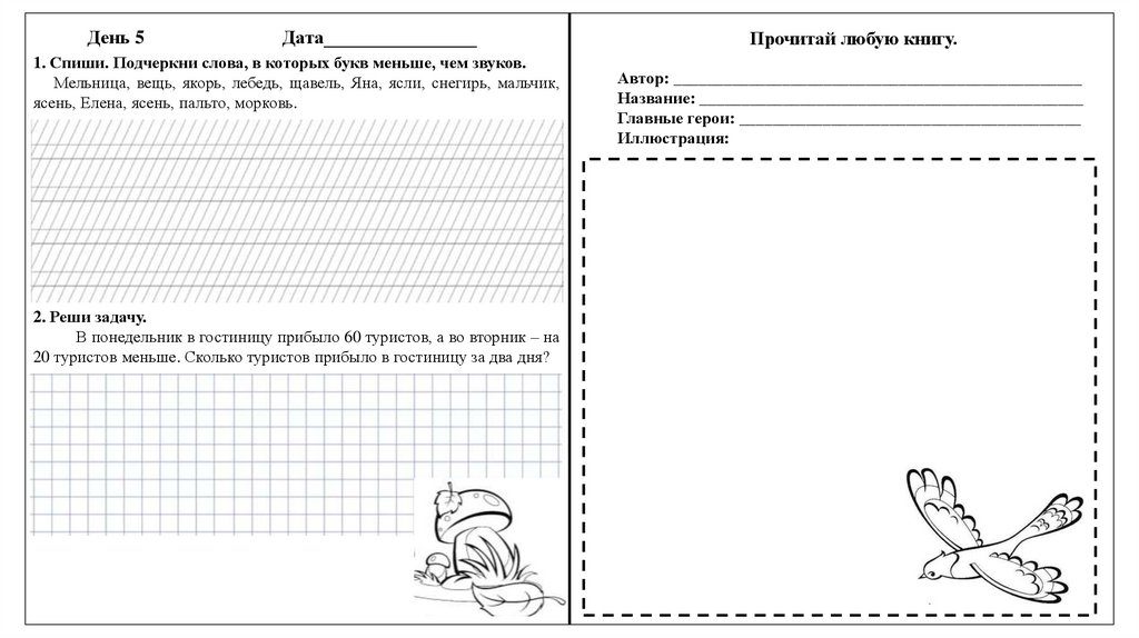 1. Спиши. Подчеркни слова, в которых букв меньше, чем звуков.