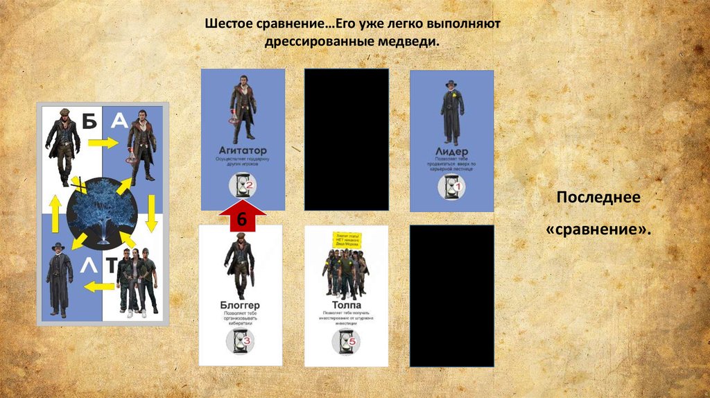 Шестое сравнение. Толпа съедает лидера. Так чтоштурман теряет карту…