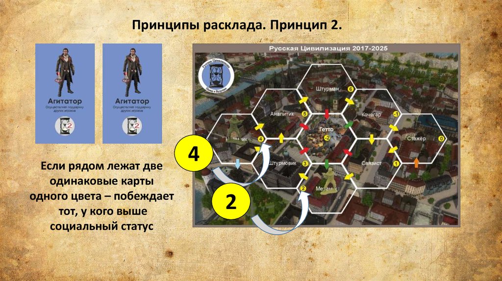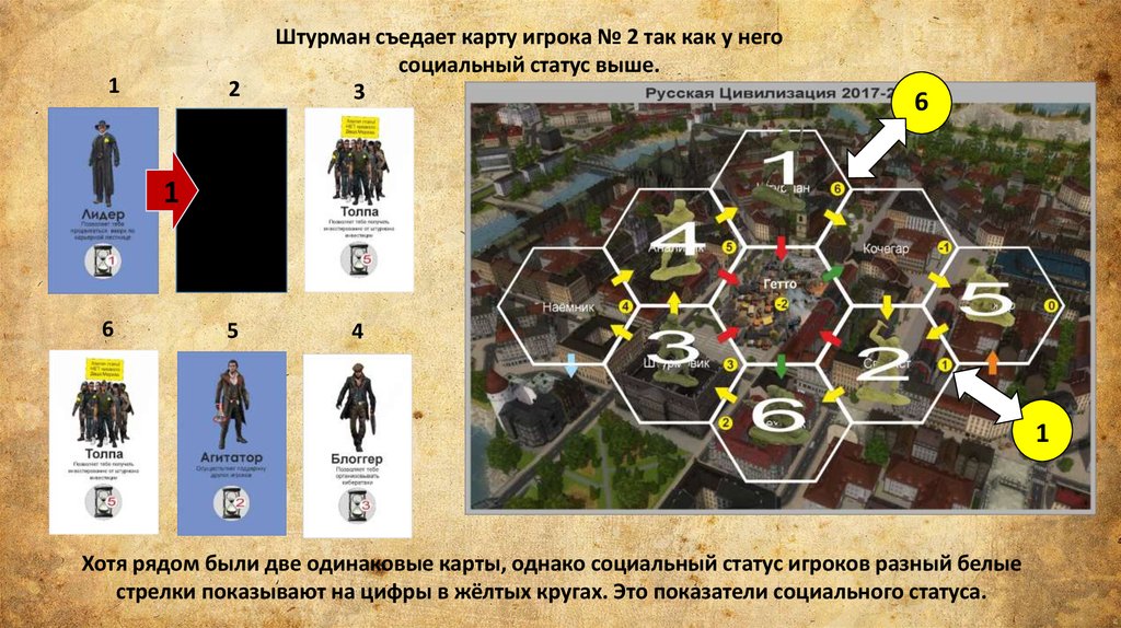 стрелки показывают на цифры в жёлтых кругах. Это показатели социального статуса.