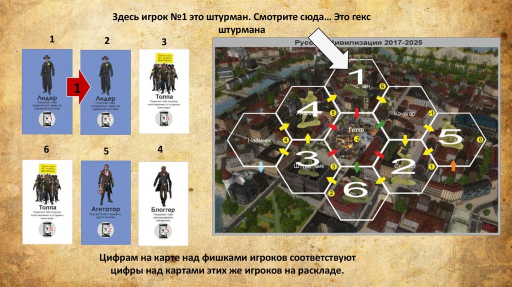 Здесь игрок №1 это штурман. Смотрите сюда… Это гексштурмана