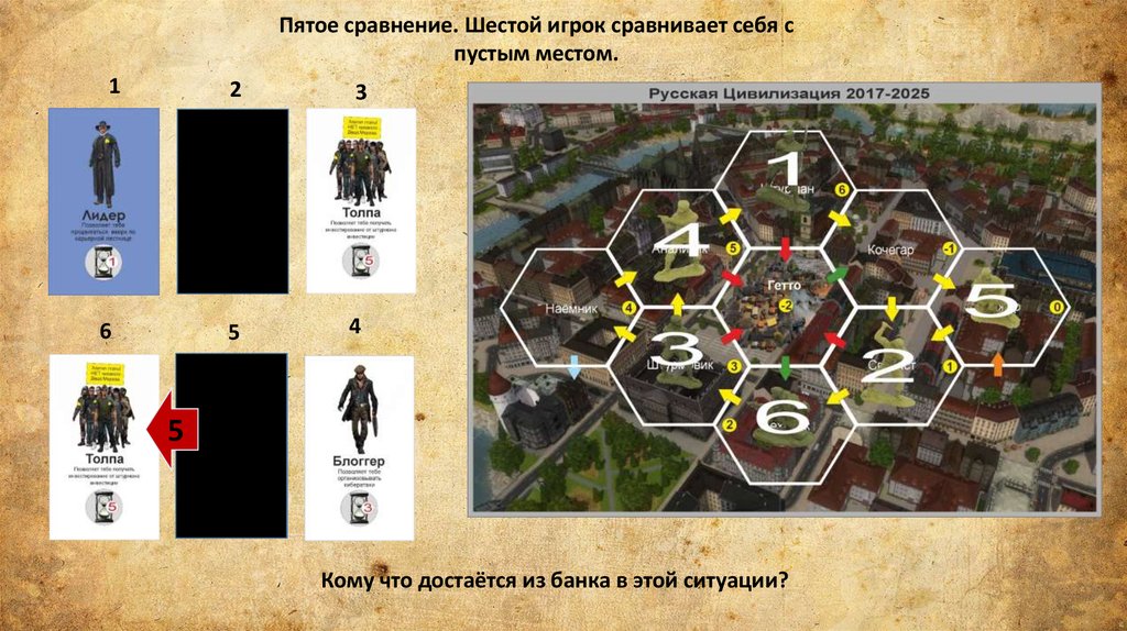 Пятое сравнение. Шестой игрок сравнивает себя спустым местом.
