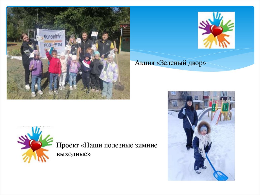 - «Помогаем малышам» https://vk.com/wall-201407879_797- Проект «Наши полезные зимние выходные» https://vk.com/wall-201407879_853