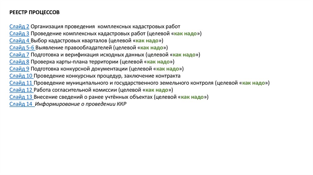 РЕЕСТР ПРОЦЕССОВСлайд 2 Организация проведения комплексных кадастровых работ