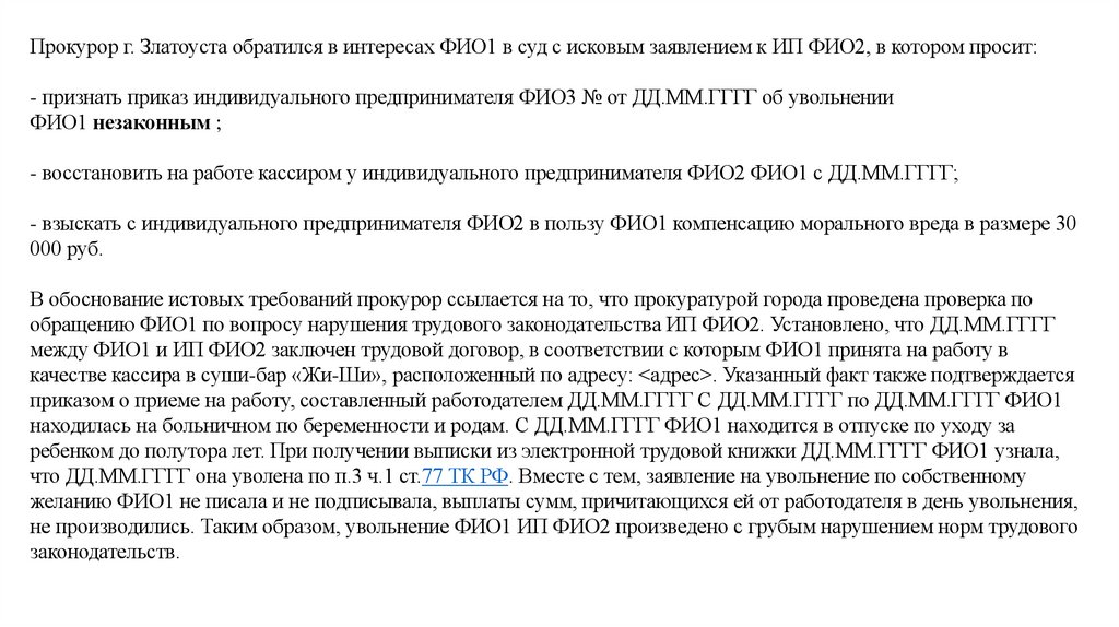 В случаях увольнения без законного основания или с нарушением установленного порядка