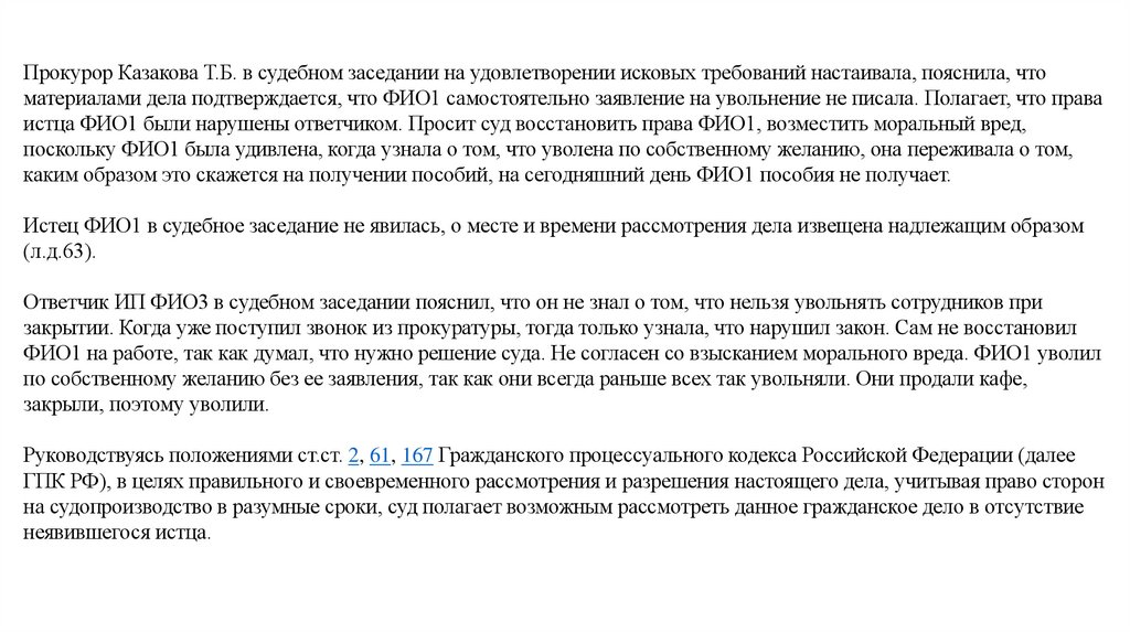 1. Несоблюдение процедуры увольнения (например, увольнение за прогул без затребования