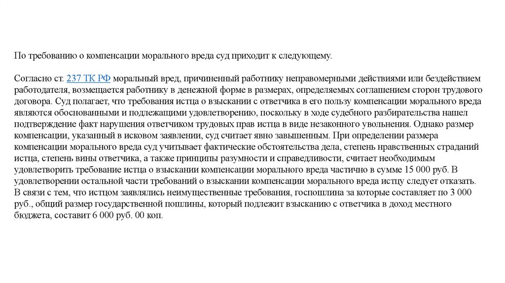 вынести решение о взыскании в пользу работника денежной компенсации морального вреда,