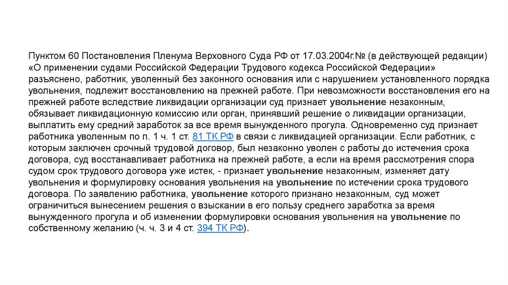 17.03.2004г. № «О применении судами Российской Федерации Трудового кодекса РФ», принимая во