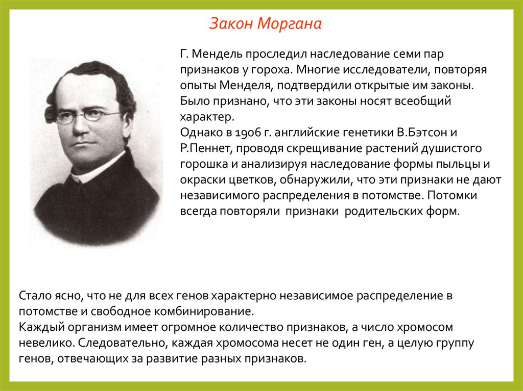 Закон МорганаГ. Мендель проследил наследование семи пар