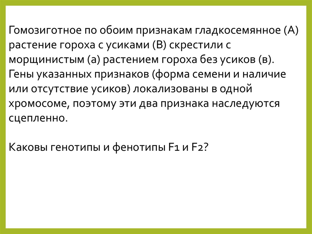 Гомозиготное по обоим признакам гладкосемянное (А)растение гороха с усиками (В) скрестили с