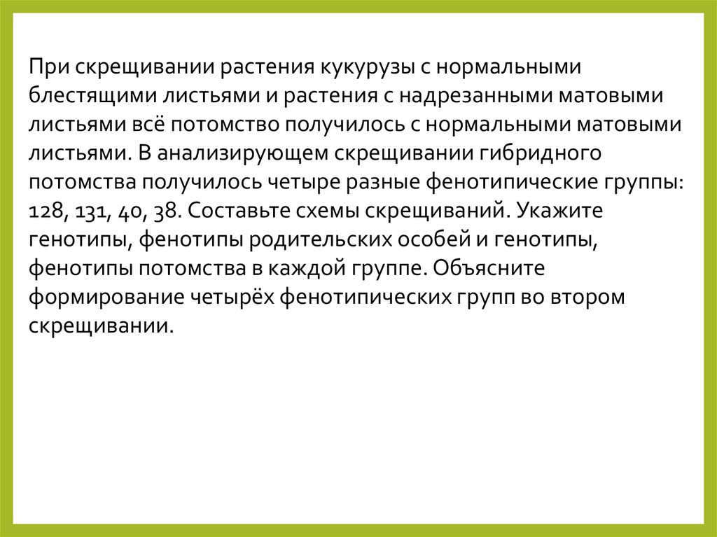 При скрещивании растения кукурузы с нормальнымиблестящими листьями и растения с надрезанными матовыми