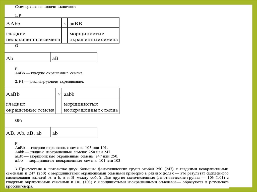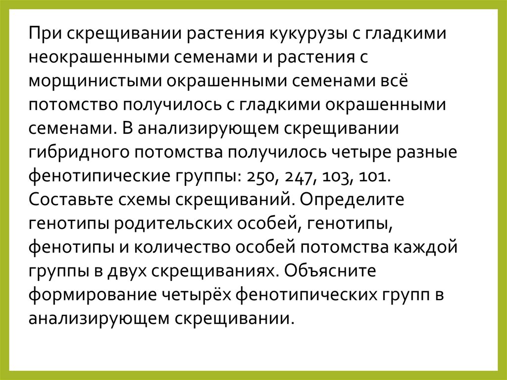 гладкими окрашенными семенами и 101 (103) с морщинистыми неокрашенными семенами — образуются в результате
