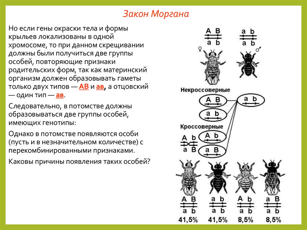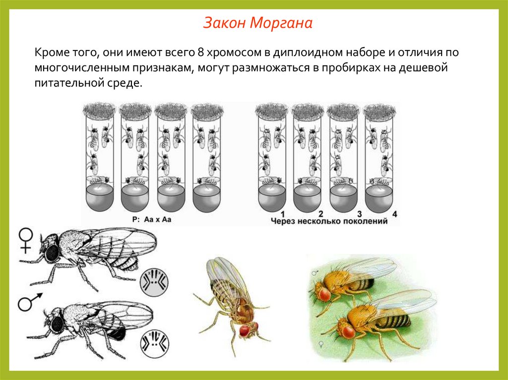 Закон МорганаКроме того, они имеют всего 8 хромосом в диплоидном наборе и отличия по