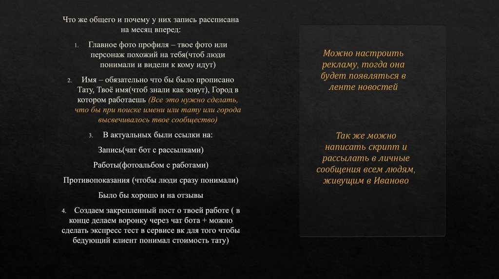 3. В описании напиши почему должны выбрать именно тебя и в каких стилях бьешь, ссылка на сайт