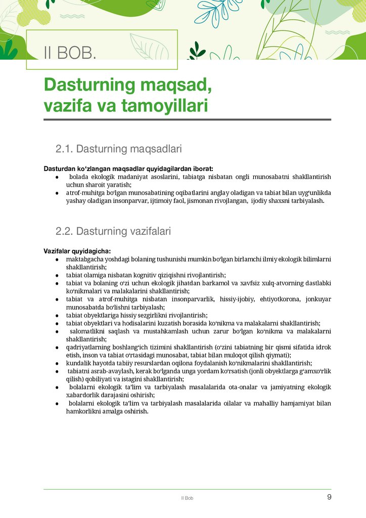 II BOB. Dasturning maqsad, vazifa va tamoyillari