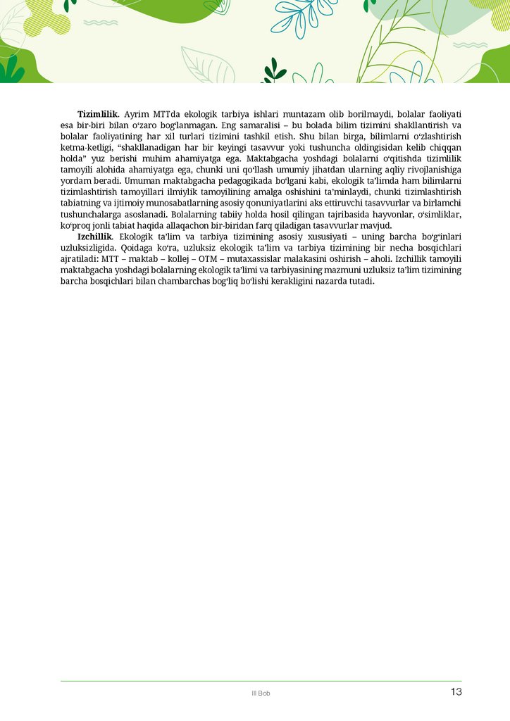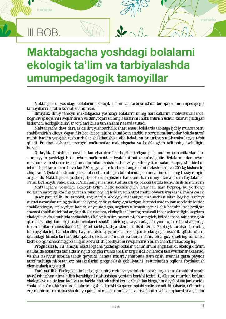 III BOB. Maktabgacha yoshdagi bolalarni ekologik ta’lim va tarbiyalashdagi umumpedagogik tamoyillar