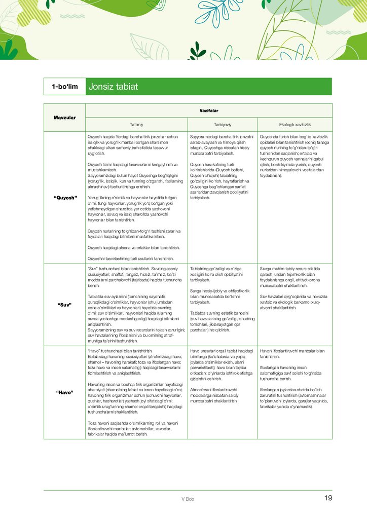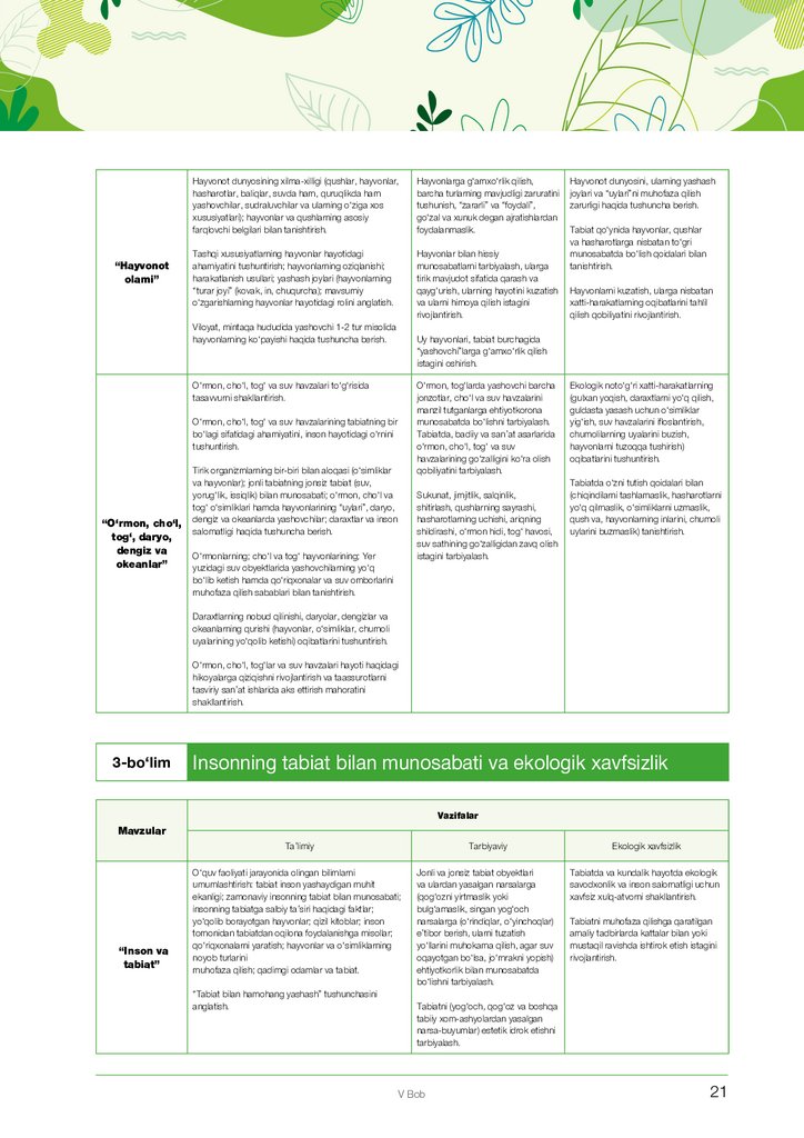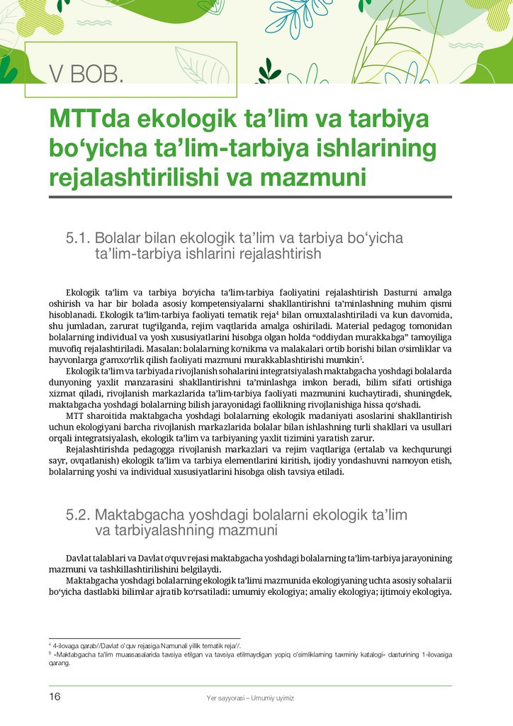 V BOB. MTTda ekologik ta’lim va tarbiya bo‘yicha ta’lim-tarbiya ishlarining rejalashtirilishi va mazmuni