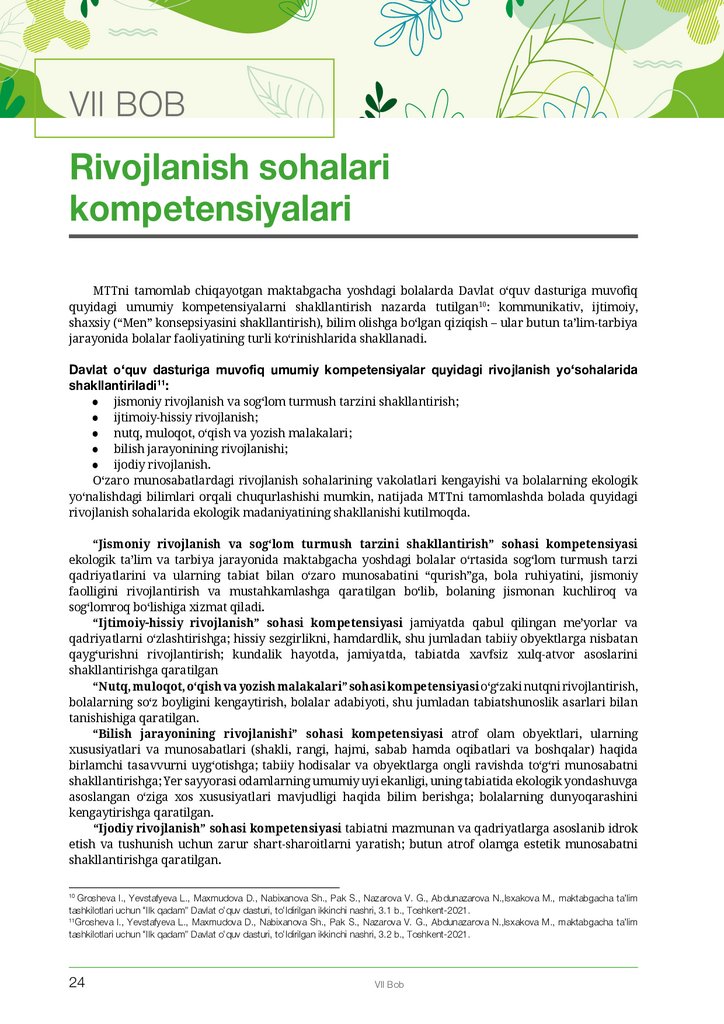 VII BOB. Rivojlanish sohalari kompetensiyalari