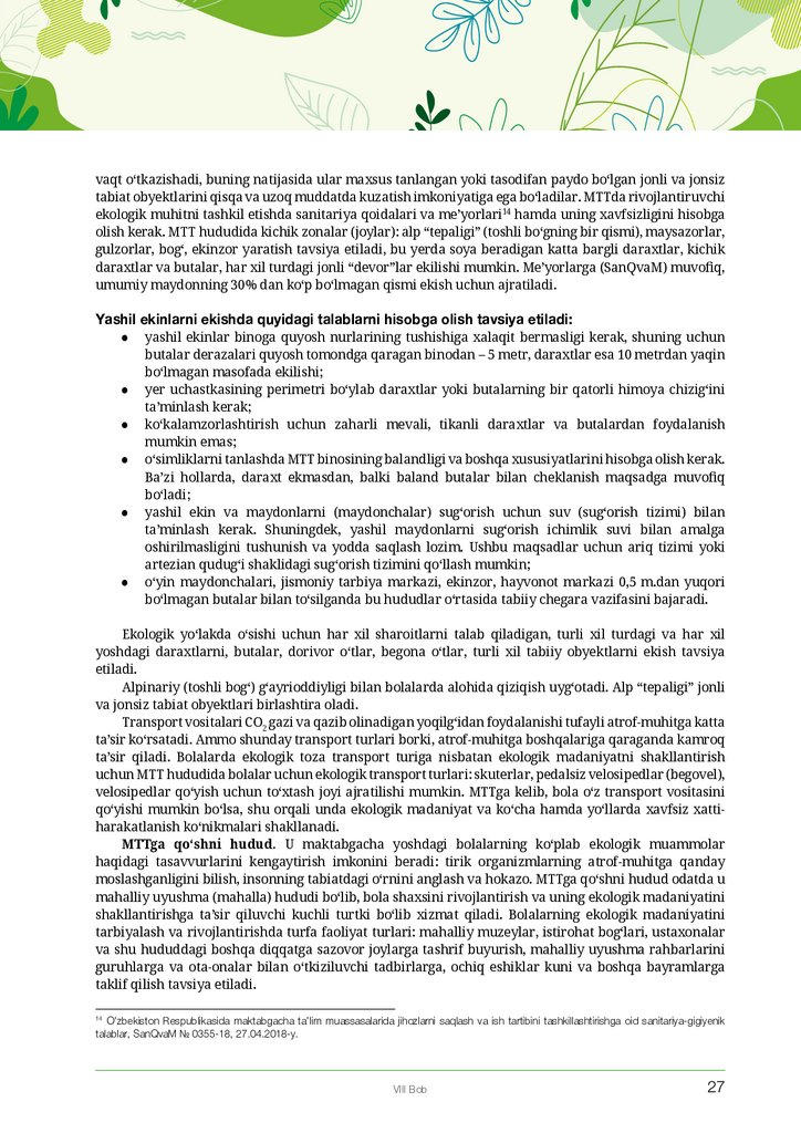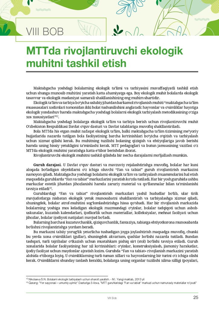 VIII BOB. MTTda rivojlantiruvchi ekologik muhitni tashkil etish
