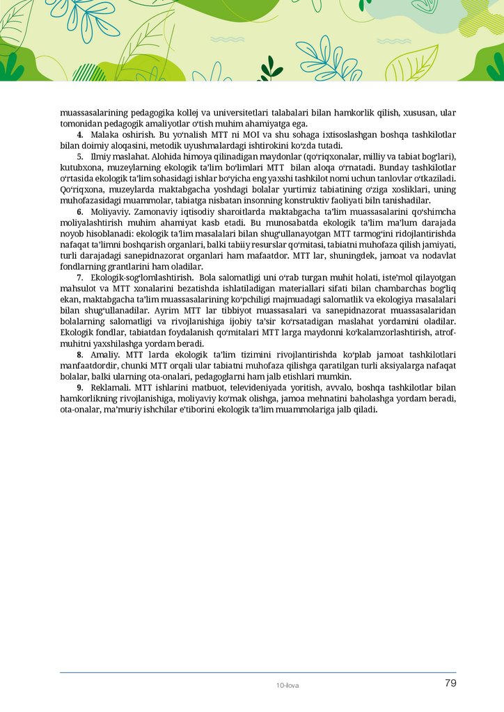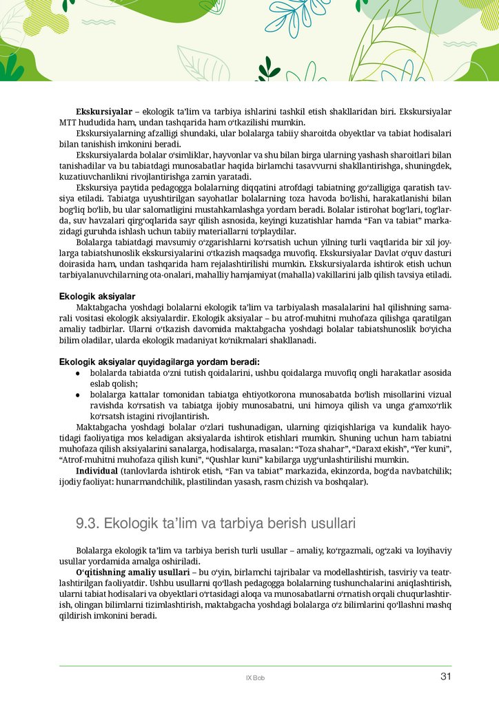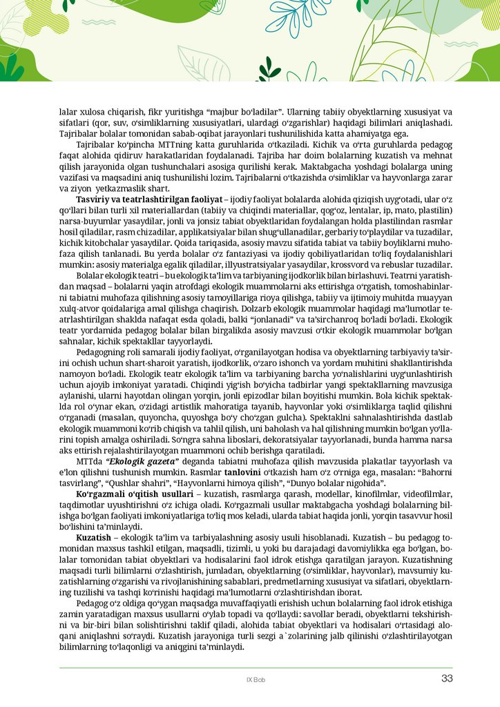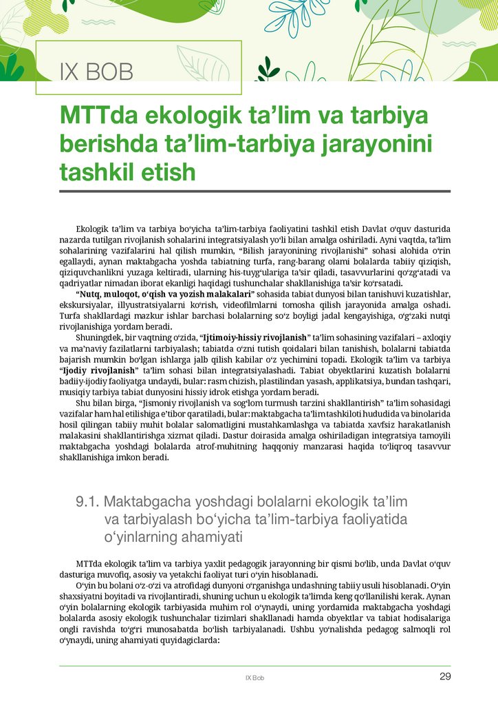 IX BOB. MTTda ekologik ta’lim va tarbiya berishda ta’lim-tarbiya jarayonini tashkil etish