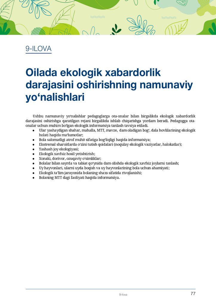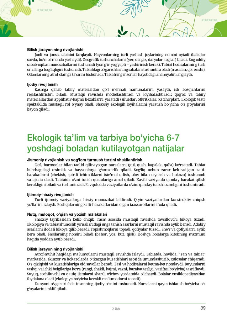 olingan holda ishlab chiqildi. Ushbu dastur pedagog va ota-onalarga maktabgacha yoshdagi bolalarning ekologik