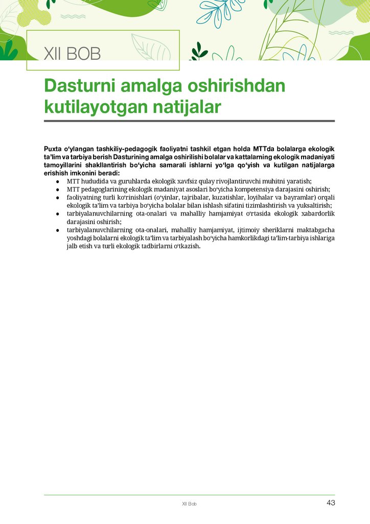 XII BOB. Dasturni amalga oshirishdan kutilayotgan natijalar