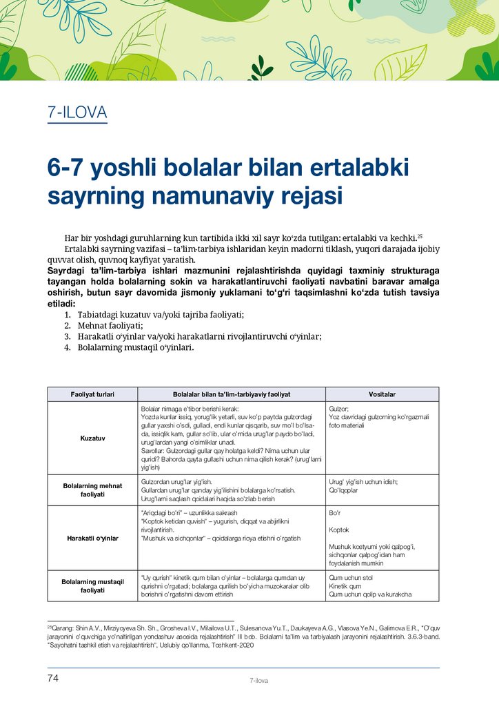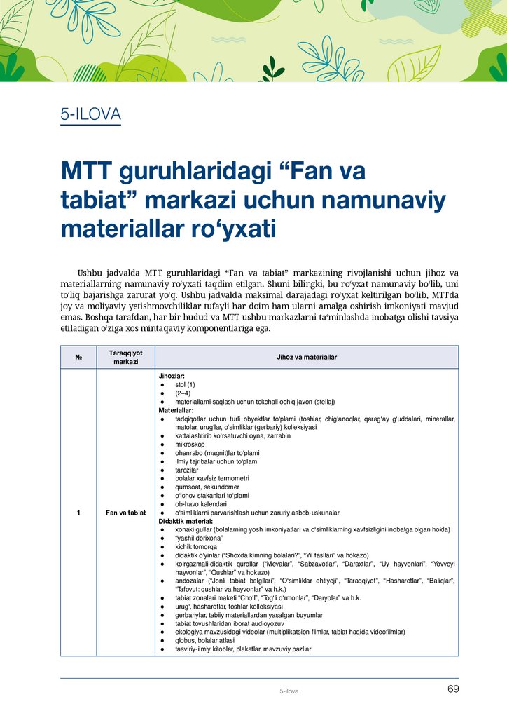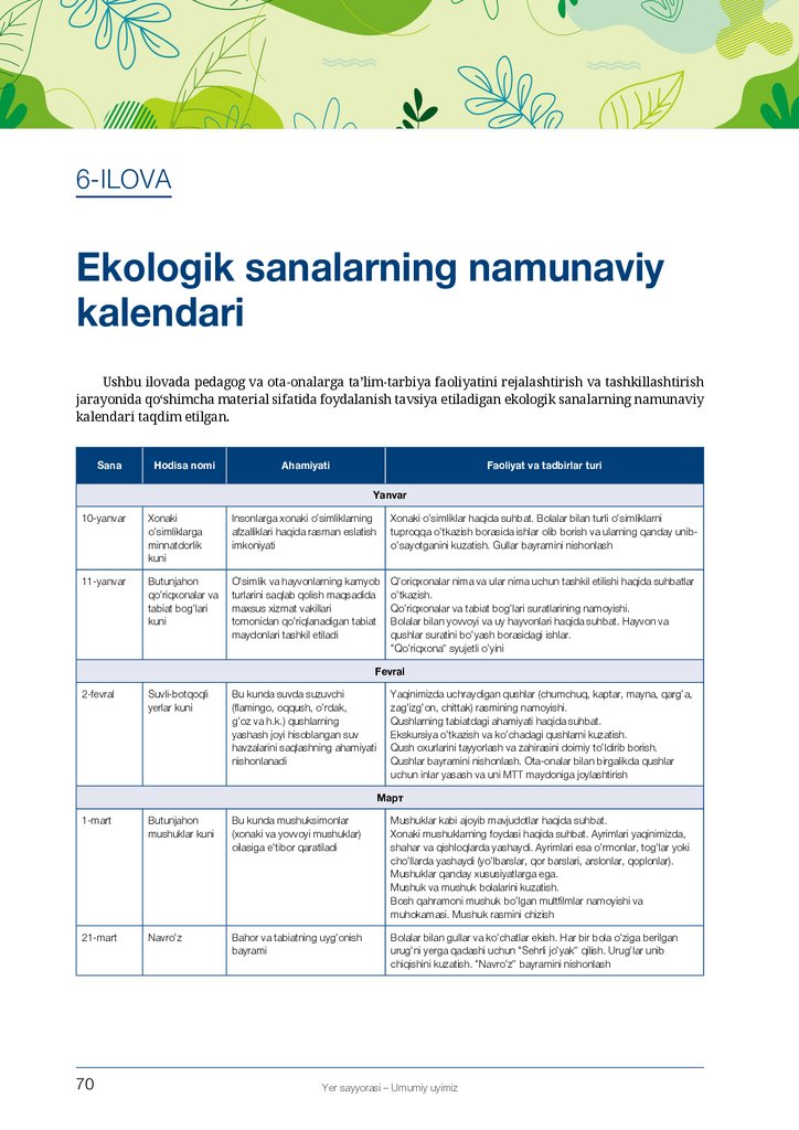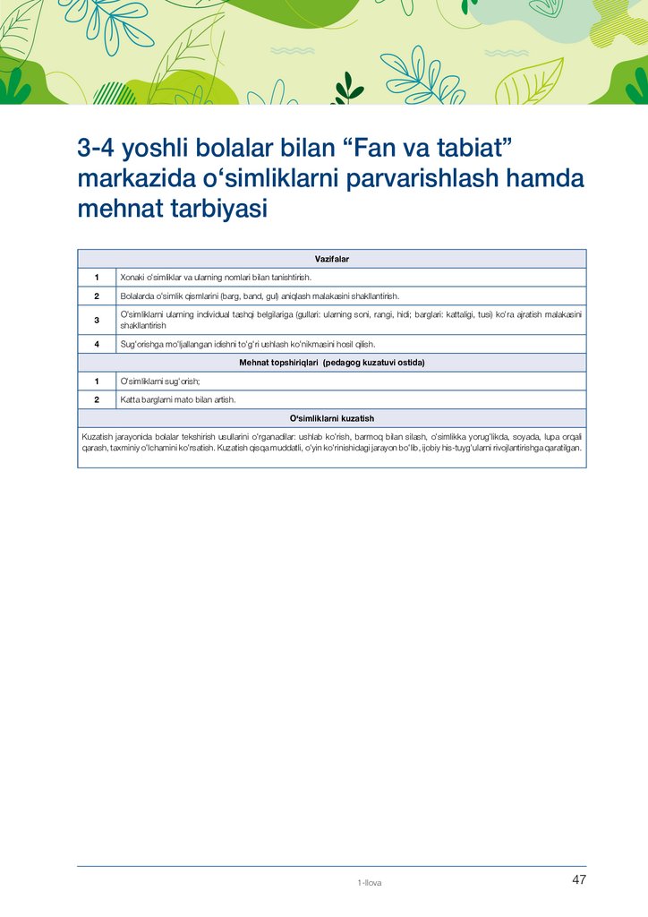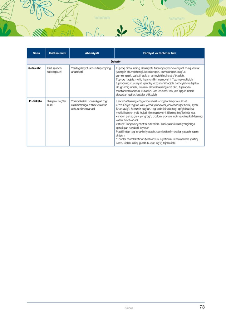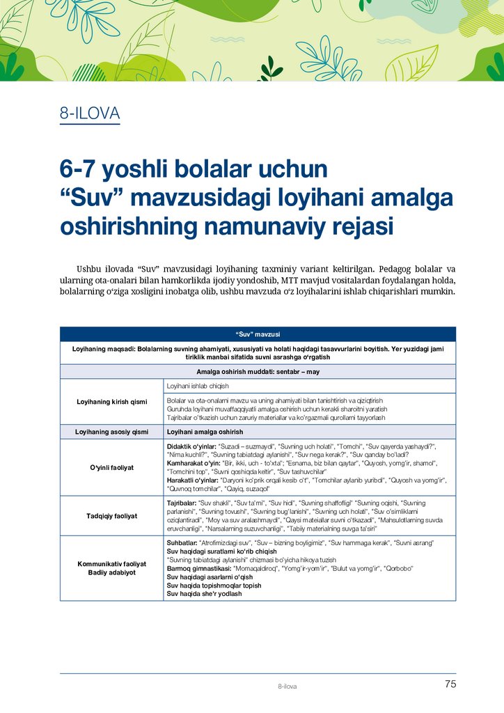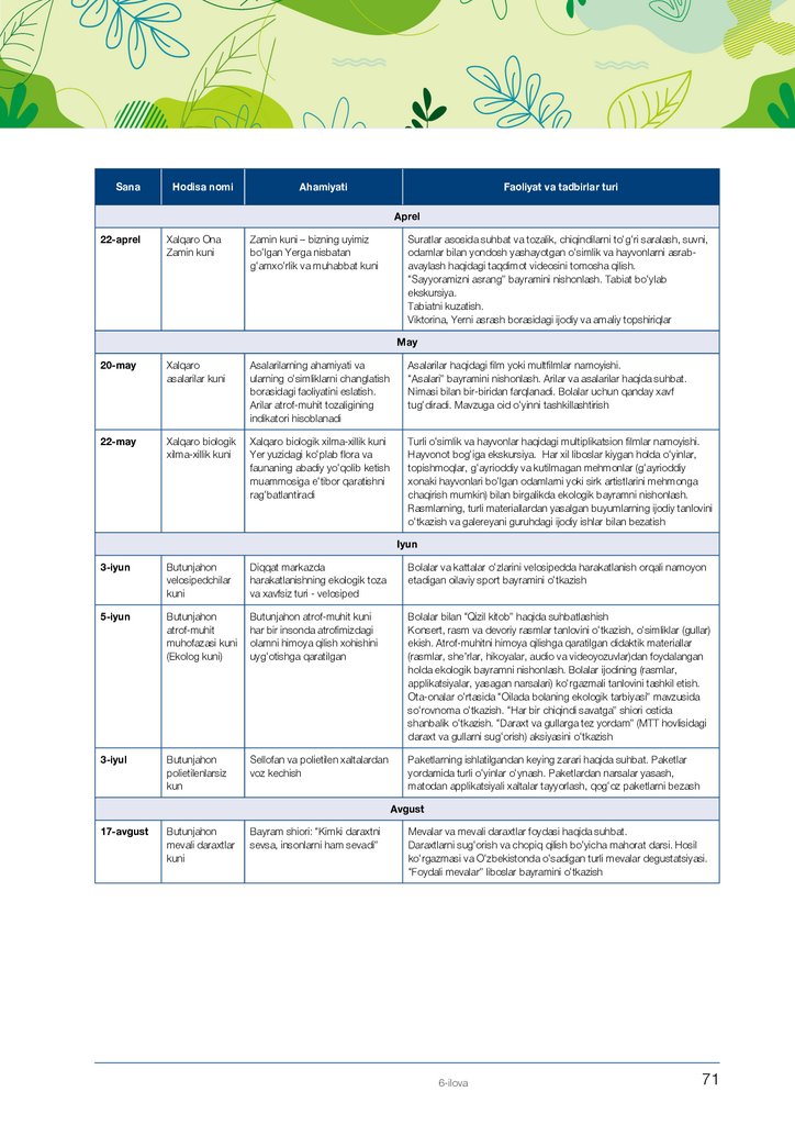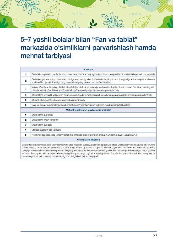5.1. Bolalar bilan ekologik ta’lim va tarbiya bo‘yicha ta’lim-tarbiya ishlarini rejalashtirish