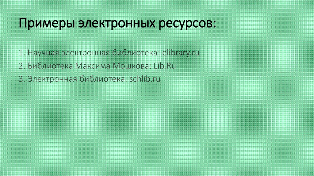 Примеры электронных ресурсов:1. Научная электронная библиотека: elibrary.ru
