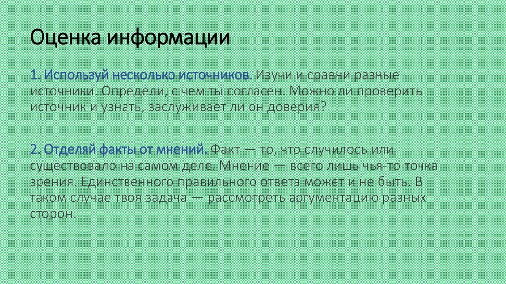 Оценка информации1. Используй несколько источников. Изучи и сравни разные