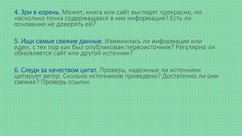 4. Зри в корень. Может, книга или сайт выглядят прекрасно, нонасколько точна содержащаяся в них информация? Есть ли