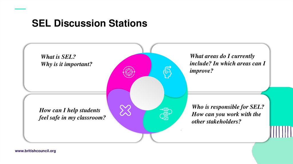 By the end of the day, teachers will be able to:Identify areas for integrating SEL into their classrooms.