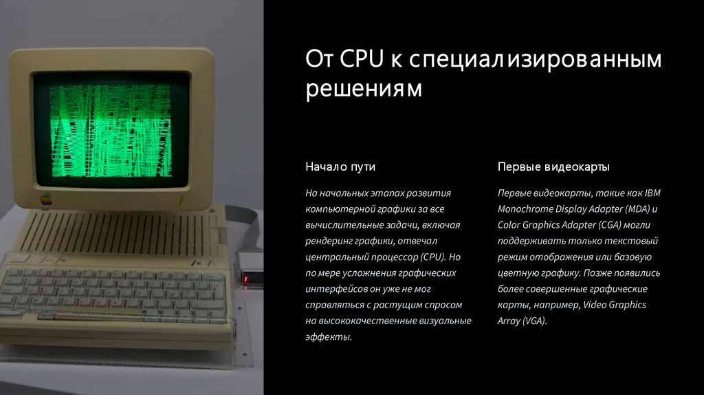 От простых текстовых адаптеров до мощных вычислительных систем — GPU прошли