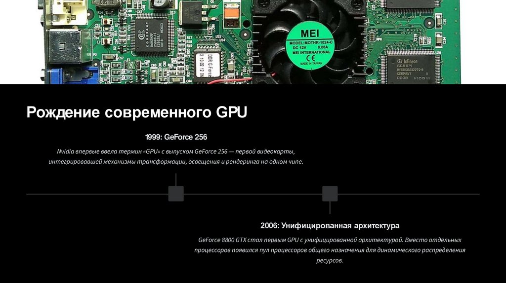 GeForce 8800 GTX стал первым GPU с унифицированной архитектурой. Вместо отдельных
