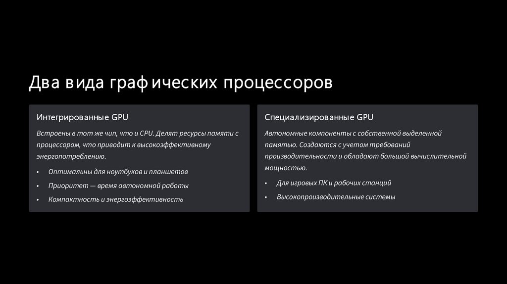 Два в ида граф ических процессоровИнтегрированны е GPU