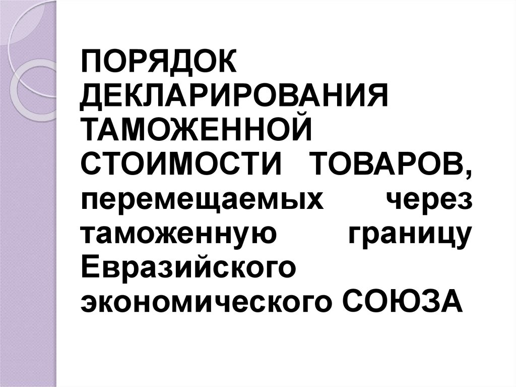 1. Порядок заявления таможеннойстоимости товаров.