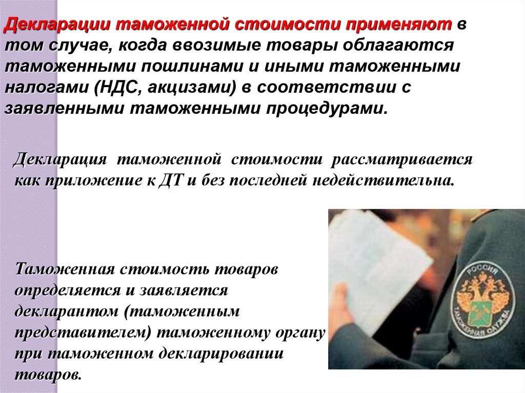 декларации, декларации таможенной стоимости и иных