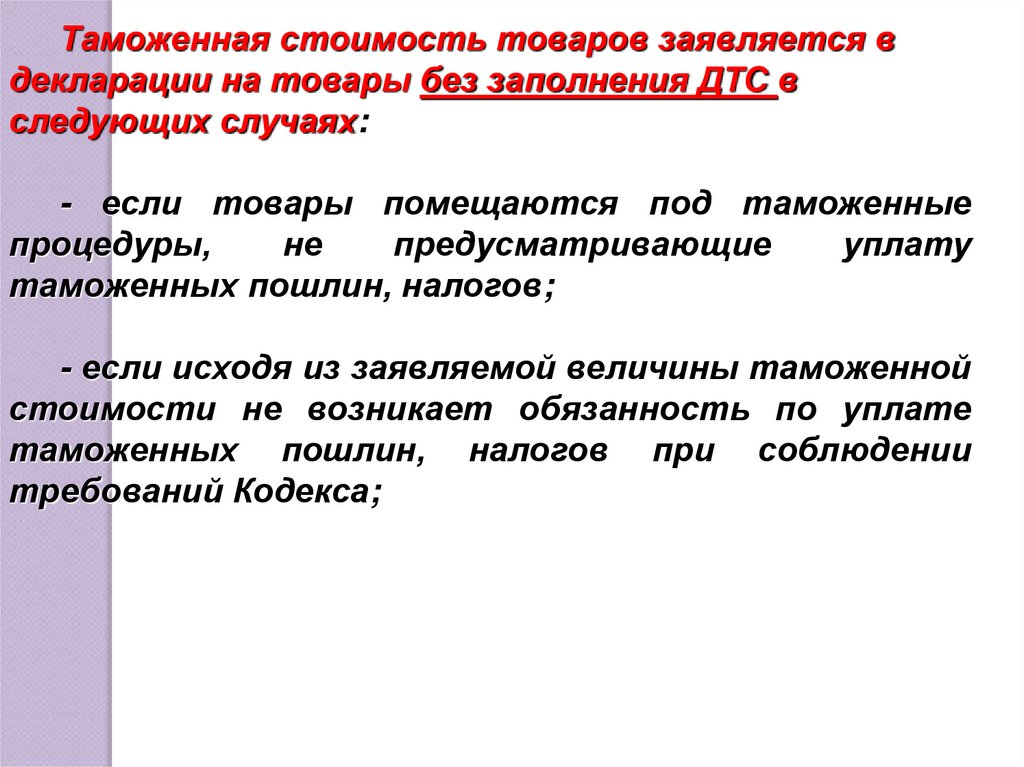 "О случаях заполнения декларации таможенной стоимости,