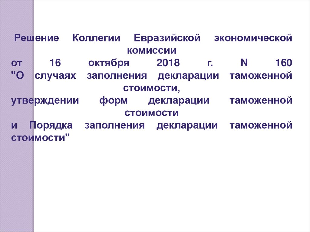 Коллегии ЕЭК №160 от 16 октября 2018 г (вступило в силу