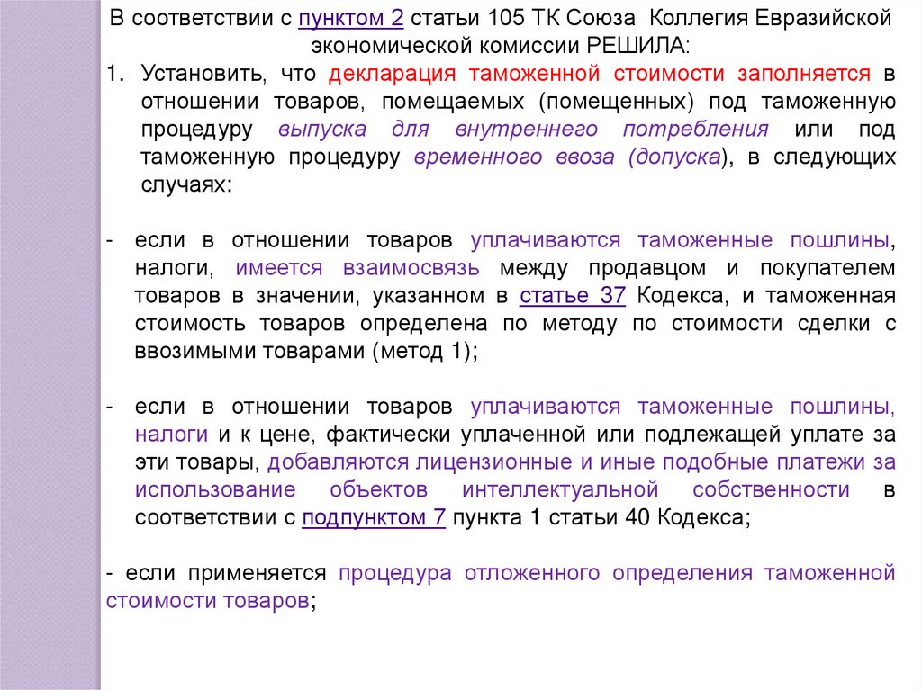 В соответствии с пунктом 2 статьи 105 ТК Союза Коллегия Евразийскойэкономической комиссии РЕШИЛА: