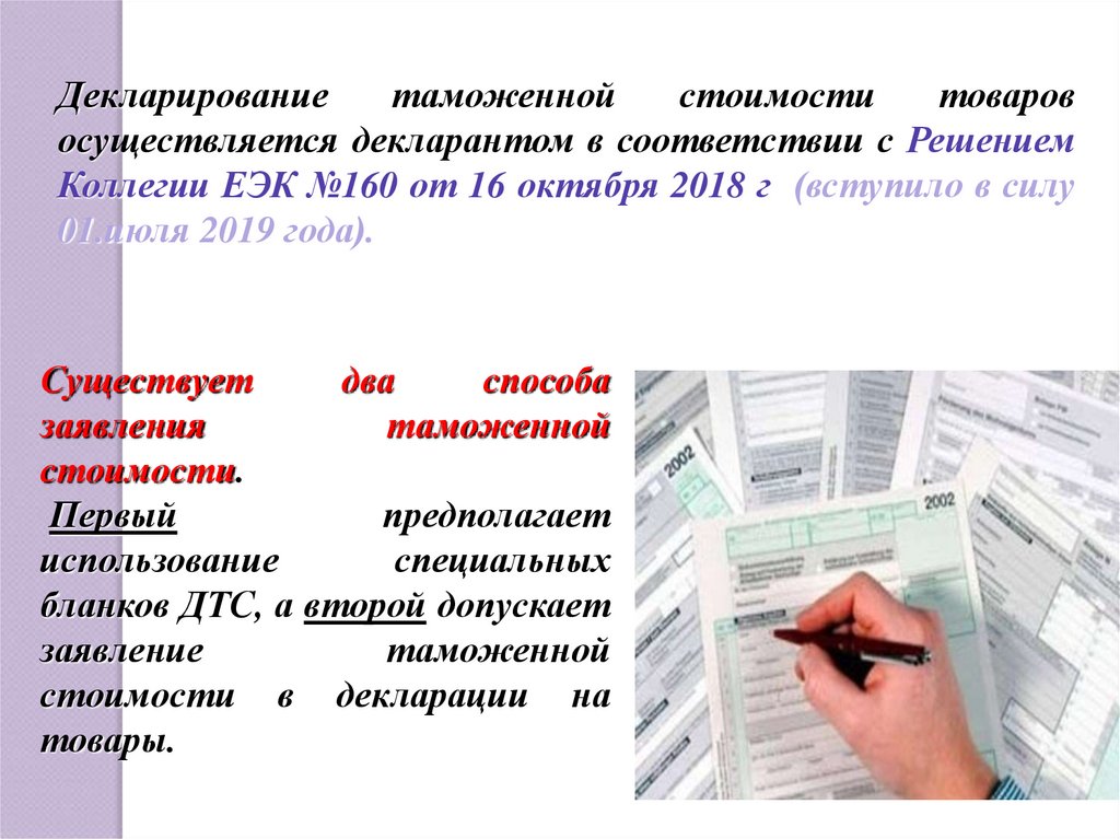 заполнения декларации таможенной стоимости» №