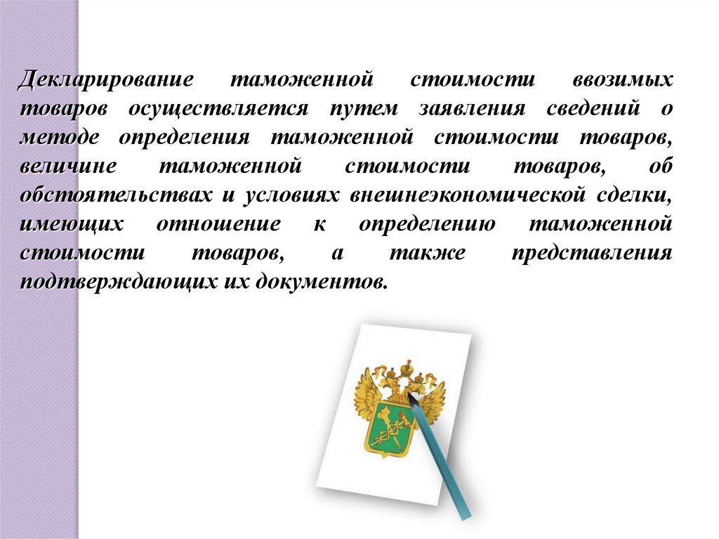 товаров осуществляется путем заявления сведений о
