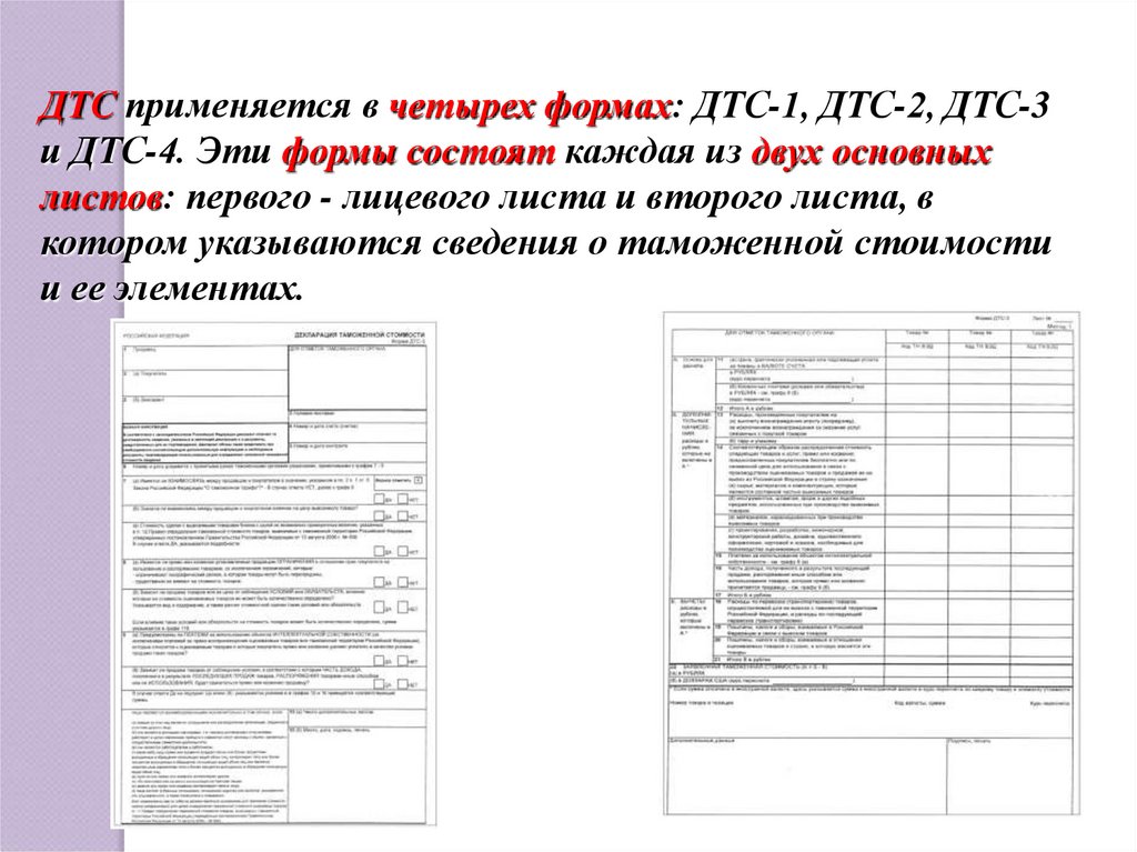 таможенной стоимости один экземпляр ДТС остается